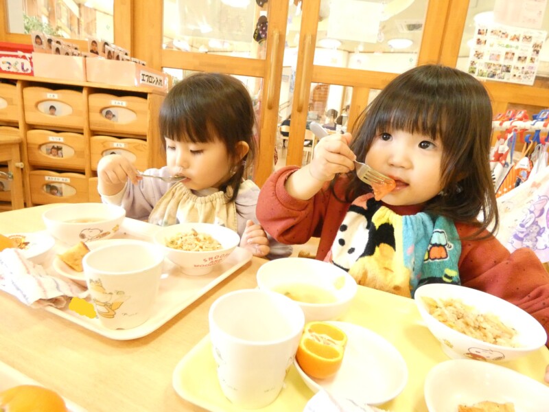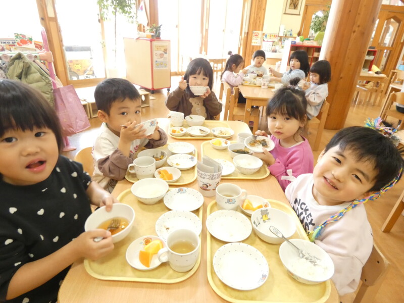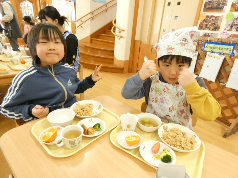 2月13日(金)今日、配膳をしていて「これは鯖だ!僕好きだからいっぱいにして下さい」と言っている園児がいました。 「僕、パパと一緒によく海に釣りに行くから、いわしや鯖を釣って、食べるんだよ~!」と食事をしながら私も一緒に会話を楽しみました。どうやらお父さんが魚をさばき、料理してくれるようなんです!すごい! 一緒にテーブルに座っていたお友だちも興味津々で話を聞き、 お家での経験もこうやって学びへとつながっているんだなぁ…と改めて感じました。 さて、今日は鯖の味噌焼きとビーフンの野菜炒めでした。 ビーフンに、キャベツやピーマン、人参など野菜がたくさん入っていて、ボリュームたっぷりでした。 おかわりをしている子も多かったです。 野菜を食べられる園児が増えたな~とうれしく思います。 「明日は餃子だ✨」と明日のメニューをみて楽しみにしている園児もいましたよ!(佐々木綾乃)