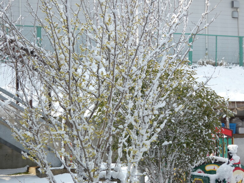 3月13日(金) 太陽は、厚い雲に覆われ、気温も6℃前後と低く、外遊びには少し寒い感じがしますが、子どもたちは元気。特に年長組は明日が「卒園式」ということで少しテンションが上がり気味。ストレス発散のためにサッカーを楽しんでいました。顔を真っ赤にして、汗を垂らしながら園庭を走り回っていました。3歳児、4歳児も園庭の大型遊具や三輪車など乗り回し、遊んでいました。やはり園庭には子どもたちの歓声が似合います。寂しかった園庭にも一挙に春が巡ってきたようです。金縷梅(まんさく)の花は、黄色に咲き誇っています。今年は3月の気温が低めなので、その分、花を咲かせる期間が長かったようです。心なしか、近所の公園の桜のつぼみが膨らんできたように感じます。今年の桜は4月の早い時期に見られそうです。 さて、今日のメニューはみんな大好き「ハヤシライス」でした。カレーよりも人気があるようです。今日のサラダは「マカロニサラダ」の予定でしたが、牛蒡の差し入れがあり、急遽「牛蒡サラダ」に変更になりました。ゴボウは体に良いので大いに利用したいものです。歯応えがしっかりあるので、よく噛んで食べていたようです。さあ、明日はいよいよ「卒園式」。その後も31日までほぼ全員が登園しますが、一つの区切りであるため真剣に取り組んでいます。小学校の校長先生たちも来てくれます。幼保小連携の最終形態でもあります。子どもたちの姿をしっかり見ていただきたいと思います。