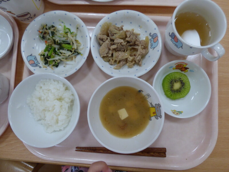 4月14日(火) 今日は天気が良く風も穏やかで、戸外遊びにはもってこいの日となりました。近くの長坂公園でも桜が見ごろをむかえているので、小さいクラスのお友だちも散歩に出かけ楽しんできたようです。朝はジャンパーを着て園庭にいた年長組のお友だちも、春の暖かな日差しと、たくさん体を動かした体温で、半そで姿になって給食を食べていました。さて、今日の給食は子どもも大人も大好き『味噌ラーメン』でした。もやしや人参、ひき肉やコーンなど、たくさんの具がのっていて、おかわりをして食べるお友だちがとても多かったです。サクサクの白身魚フライも人気があり、小さいクラスのお友だちも一生懸命フォークにさして食べようと頑張っていました。『トマトの三杯酢』は、細かく刻まれた青じその風味がほんのりと感じられ、さっぱりと食べられる一品で美味しかったです。明日は子どもたちが楽しみにしている”おにぎりの日”です。おにぎりの日=水曜日で、子どもたちは曜日の認識をしているようです。(若江)