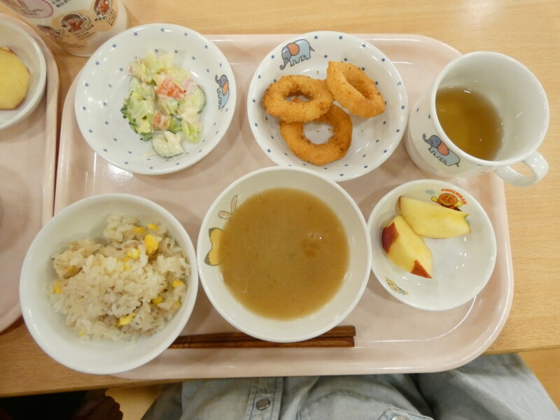 4月7日(火) 今日の午前中は市内の小学校の入学式でした。新1年生はみんなかわいらしく、笑顔の子も少し緊張している表情の子もいましたが、小学校が楽しみな気持ちが伝わって来るようでした。式後には保育園に、ピカピカのランドセルを見せにきてくれました。保育園の子ども達の中にはランドセルが欲しくなって泣いてしまう子、お兄さんお姉さんと久しぶりに会えて喜ぶ子もいましたよ。何かあってもなくてもいつでも遊びに来てほしいと思います。 さて、今日の給食はそぼろご飯でした。そぼろと炒り卵がごはんに混ぜ込まれいて、ご飯が進みます。「このご飯好きなんだ」と教えてくれる子が何人もいました。おかずはコールスローサラダとイカリングフライ。イカリングフライは「ドーナツみたい」と形を楽しみながら食べていましたよ。 さて、小学校、中学校も新学期新年度が始まりました。保育中にお散歩であったり、地域の行事で会うことも多々あるかと思います。長坂の園児はもちろん、地域の子ども達も、保育園から見守っていきたいと思っています。何かありましたらいつでもお声がけください。(松田)