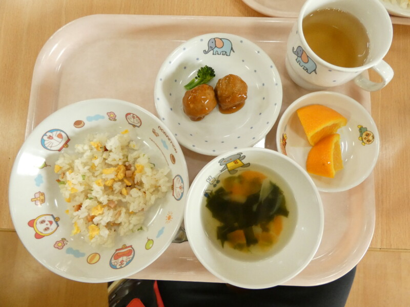 4月24日(金) 今日は4月の誕生会でした。今年度初めての誕生会だったので、4月生まれでステージに立った子ども達の中には、少し緊張している子もいました。出し物では、みんなでクイズやダンスを楽しみました!園長先生からもらった色紙とプレゼント。「プレゼントなんだろう♪」と楽しみにしている子もいましたよ。 さて、今日の給食は照り焼きチキン、ポテトでした。「照り焼きのたれ、ロールパンにつけて食べるとおいしいよ!僕はそうしたよ!」と、お友だちに自分の食べ方を教えている子もいましたよ。ポテトは星の形のポテトでした。「保育園のポテト、好き」という何気ない会話から、某チェーン店のポテトやお家で揚げてもらったポテトなど、ポテト話に花が咲いていました。シーザーサラダのドレッシングは手作りドレッシングだったようです。塩味もちょうどよく、おかわりもなくなっていましたよ。パンもおいしいと、子ども達に人気でした。 4月生まれのお友だち、お誕生日、おめでとうございました!(松田)