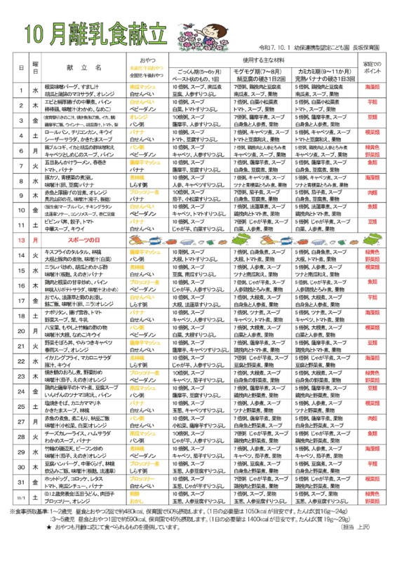 令和7年10月離乳食