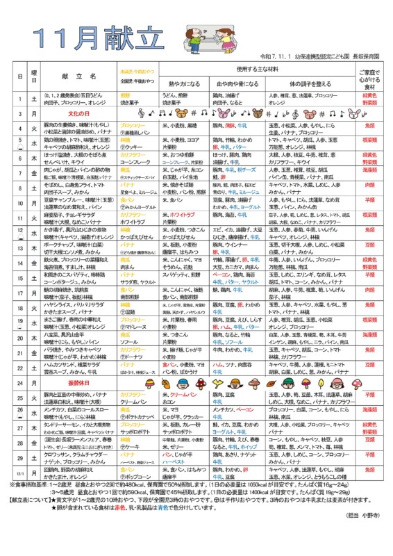 令和7年11月献立