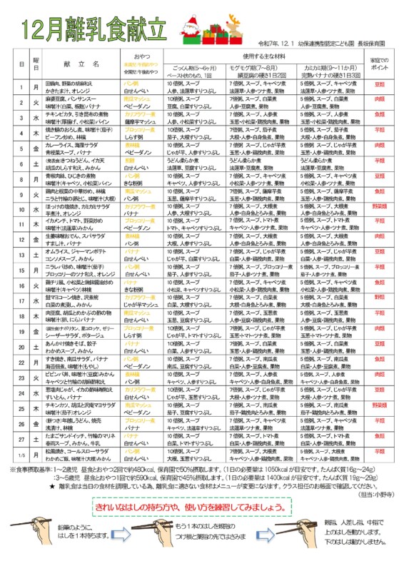 R7年12月離乳食献立