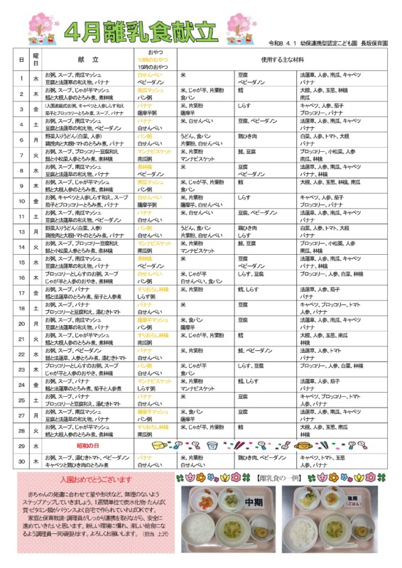 離乳食献立表